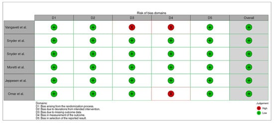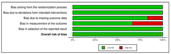 - McGuinness, L.A.; Higgins, J.P.T. Risk-of-bias VISualization (robvis): An R package and Shiny web app for visualizing risk-of-bias assessments. Res. Synth. Methods 2020, 12, 55–61. [Google Scholar] [CrossRef] [PubMed]
