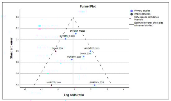 Finally, the “Trim-and-Fill” analysis (Table 10) suggested the possible existence of two missing studies to achieve symmetry in the funnel plot. However, even after their hypothetical inclusion, the adjusted effect size (Log OR = 0.900, OR = 2.461) remained very close to the original effect size (Log OR = 1.048, OR = 2.851). This confirms that our findings are consistent and that the beneficial effect of ESWT is unlikely to be due to publication bias.