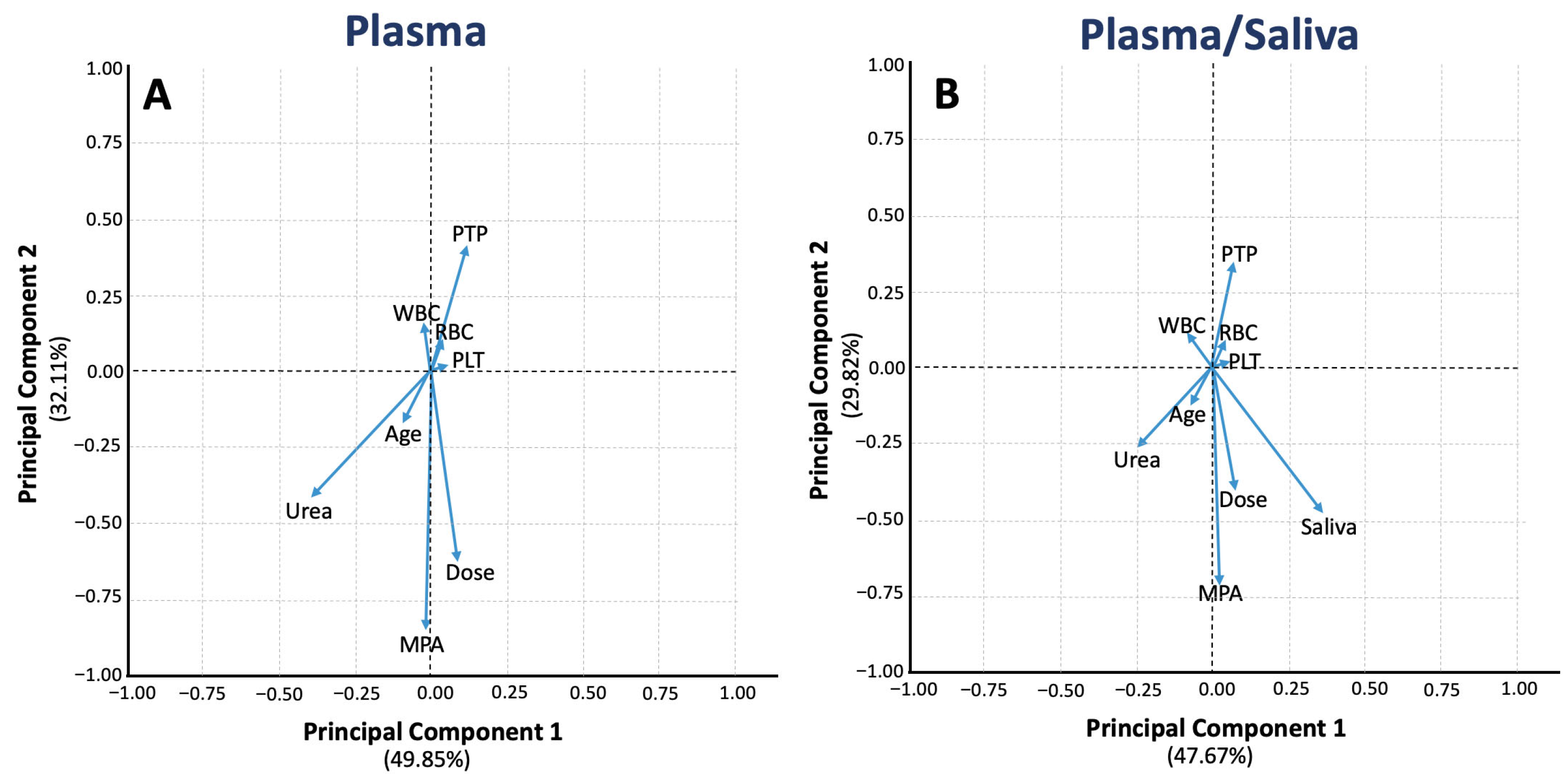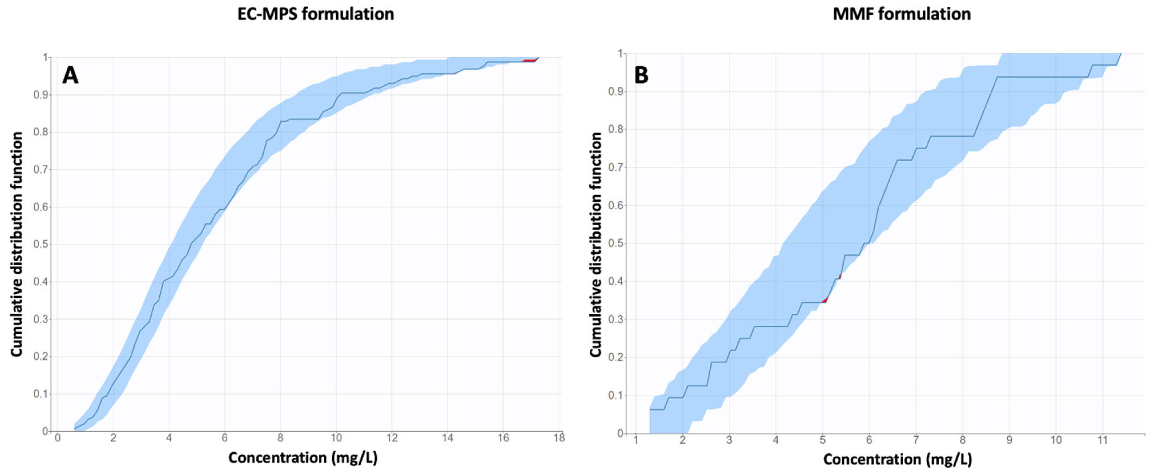 - Cossart, A.R.; Staatz, C.E.; Gorham, G.; Barraclough, K.A. Comparison of Free Plasma versus Saliva Mycophenolic Acid Exposure Following Mycophenolate Mofetil Administration in Adult Kidney Transplant Recipients. Clin. Biochem. 2022, 100, 78–81. [Google Scholar] [CrossRef]