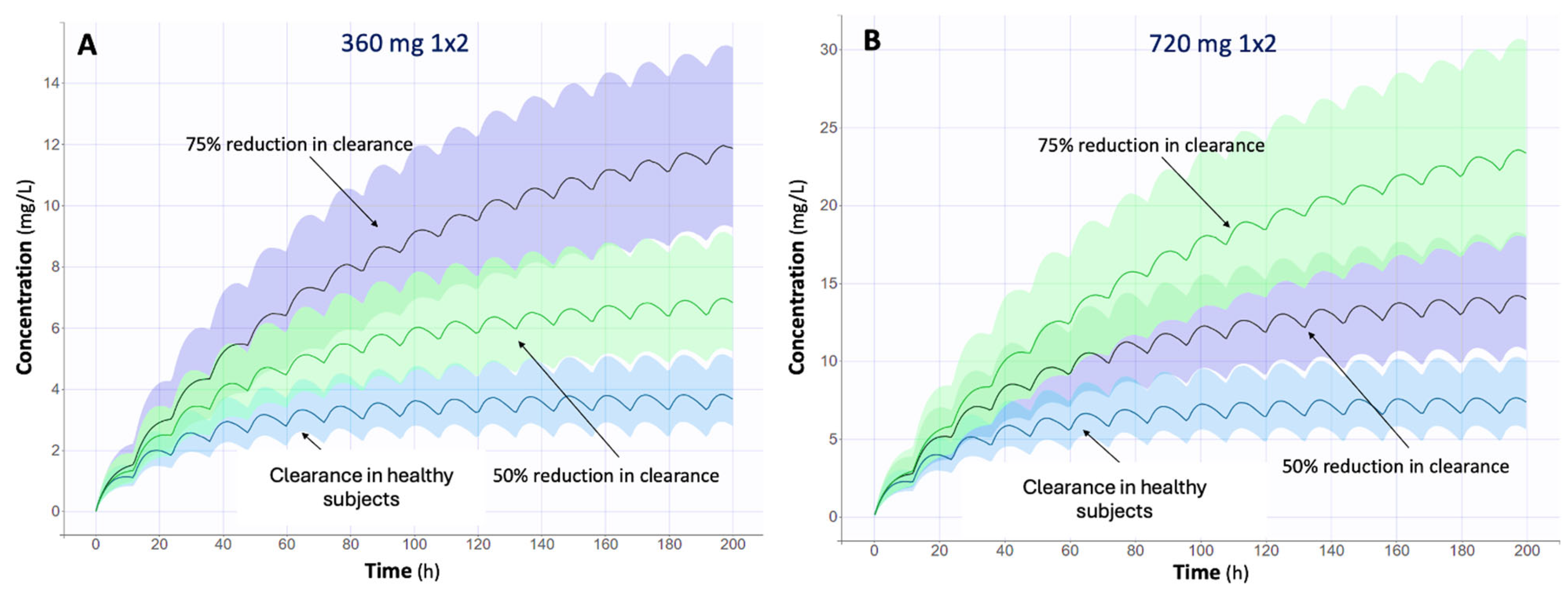 - Tsyplakova, N.; Ismailos, G.; Karalis, V.D. Optimising Pirfenidone Dosage Regimens in Idiopathic Pulmonary Fibrosis: Towards a Guide for Personalised Treatment. Xenobiotica 2025, 55, 25–36. [Google Scholar] [CrossRef]