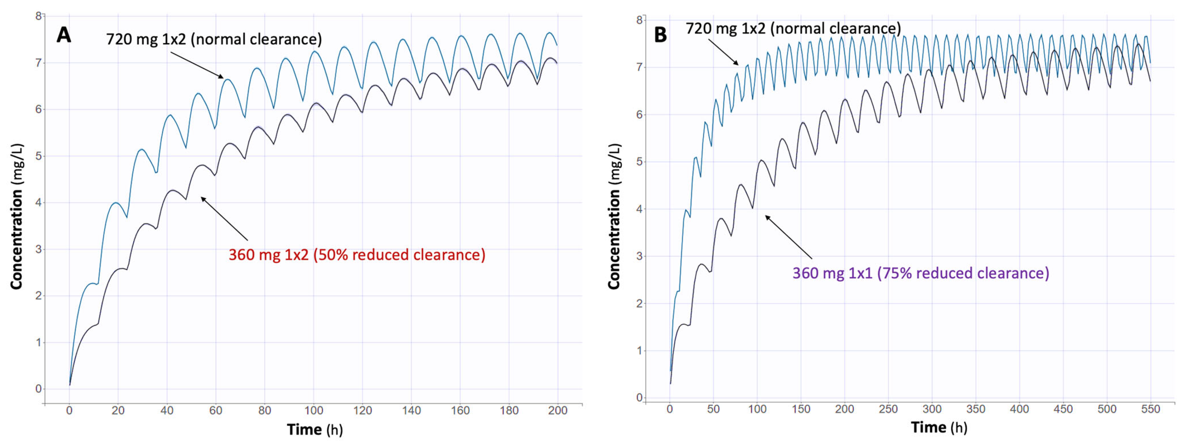 - Van Hest, R.M.; Van Gelder, T.; Bouw, R.; Goggin, T.; Gordon, R.; Mamelok, R.D.; Mathot, R.A. Time-dependent Clearance of Mycophenolic Acid in Renal Transplant Recipients. Brit. J. Clin. Pharmacol. 2007, 63, 741–752. [Google Scholar] [CrossRef]