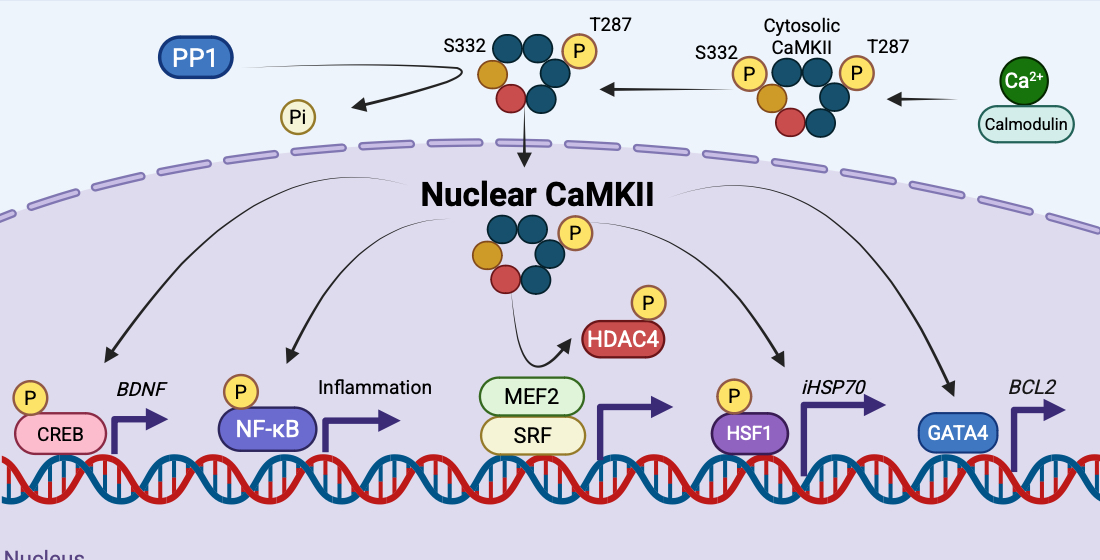 3.2. Modulation of Transcription Factors: Precision Tuning by Nuclear CaMKII