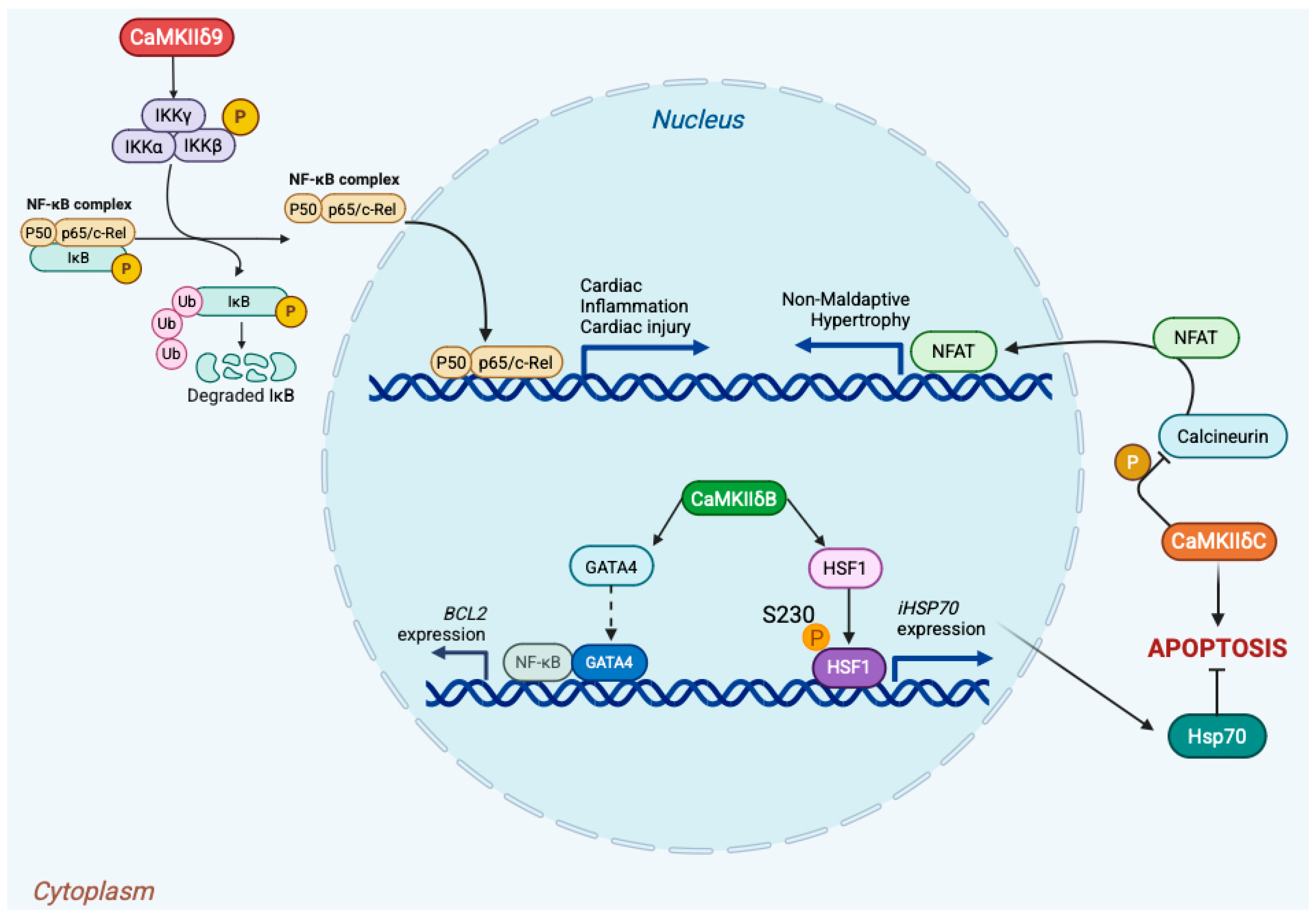 - Duran, J.; Nickel, L.; Estrada, M.; Backs, J.; van den Hoogenhof, M.M.G. CaMKIIδ Splice Variants in the Healthy and Diseased Heart. Front. Cell Dev. Biol. 2021, 9, 644630. [Google Scholar] [CrossRef]