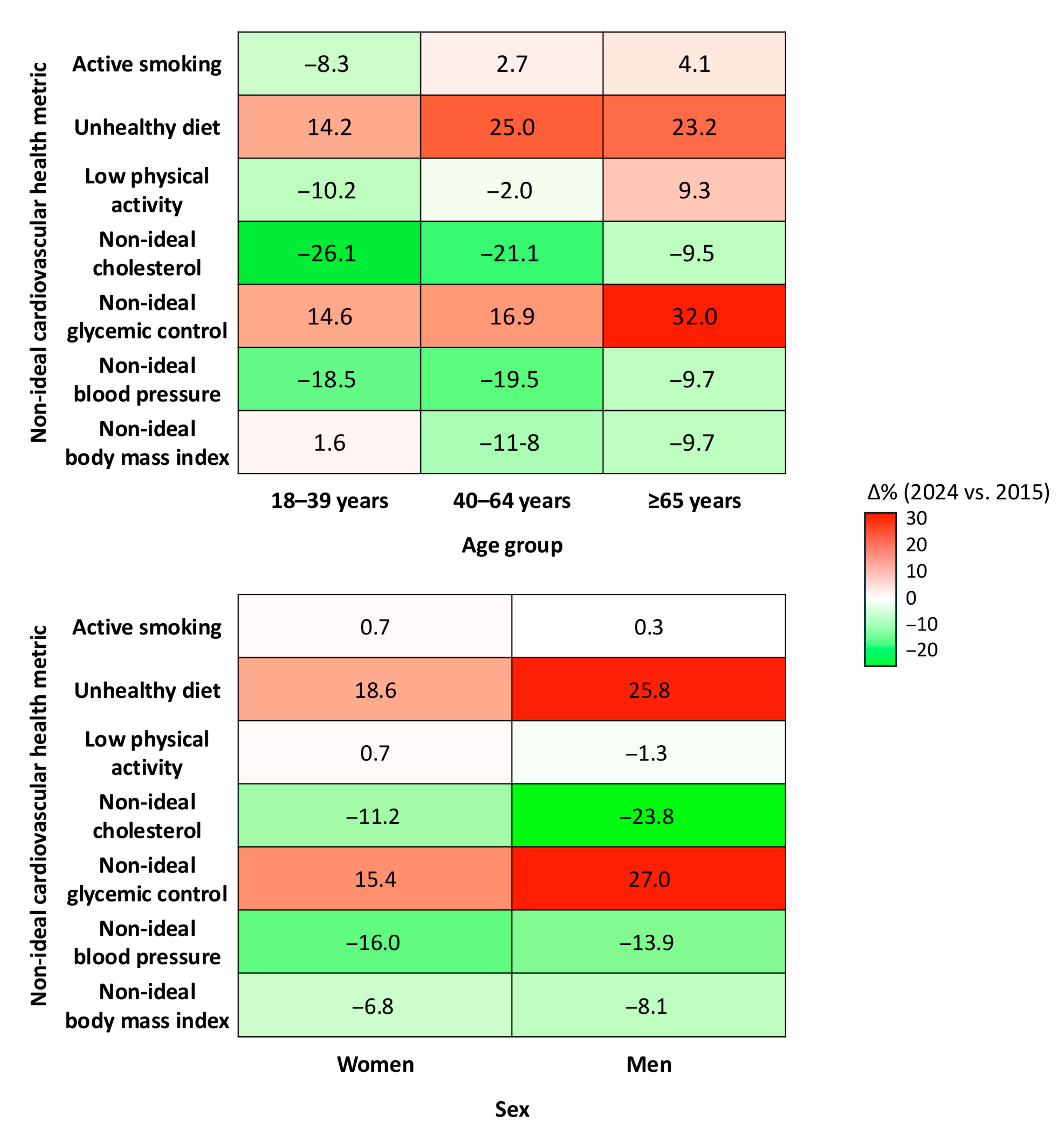 - Aguayo, L.; Cotoc, C.; Guo, J.W.; Labarthe, D.R.; Allen, N.B.; Marino, B.S.; Davis, M.M.; Uttal, S.; Lloyd-Jones, D.M.; Perak, A.M. Cardiovascular Health, 2010 to 2020: A Systematic Review of a Decade of Research on Life’s Simple 7. J. Am. Heart Assoc. 2025, 14, e038566. [Google Scholar] [CrossRef] [PubMed]