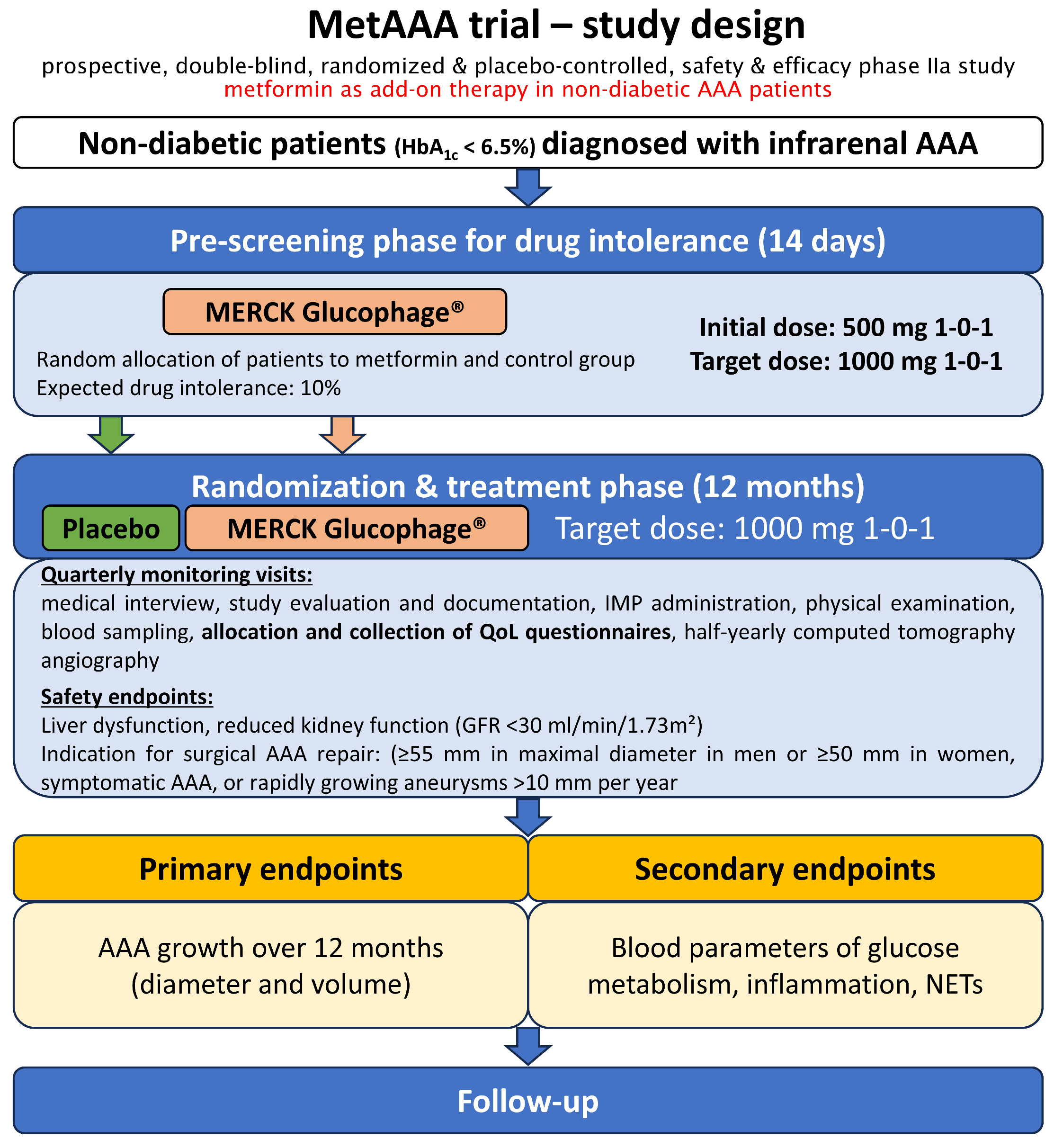 | MetAAA | Metformin Therapy in Non-diabetic Patients with Abdominal Aortic Aneurysm |
