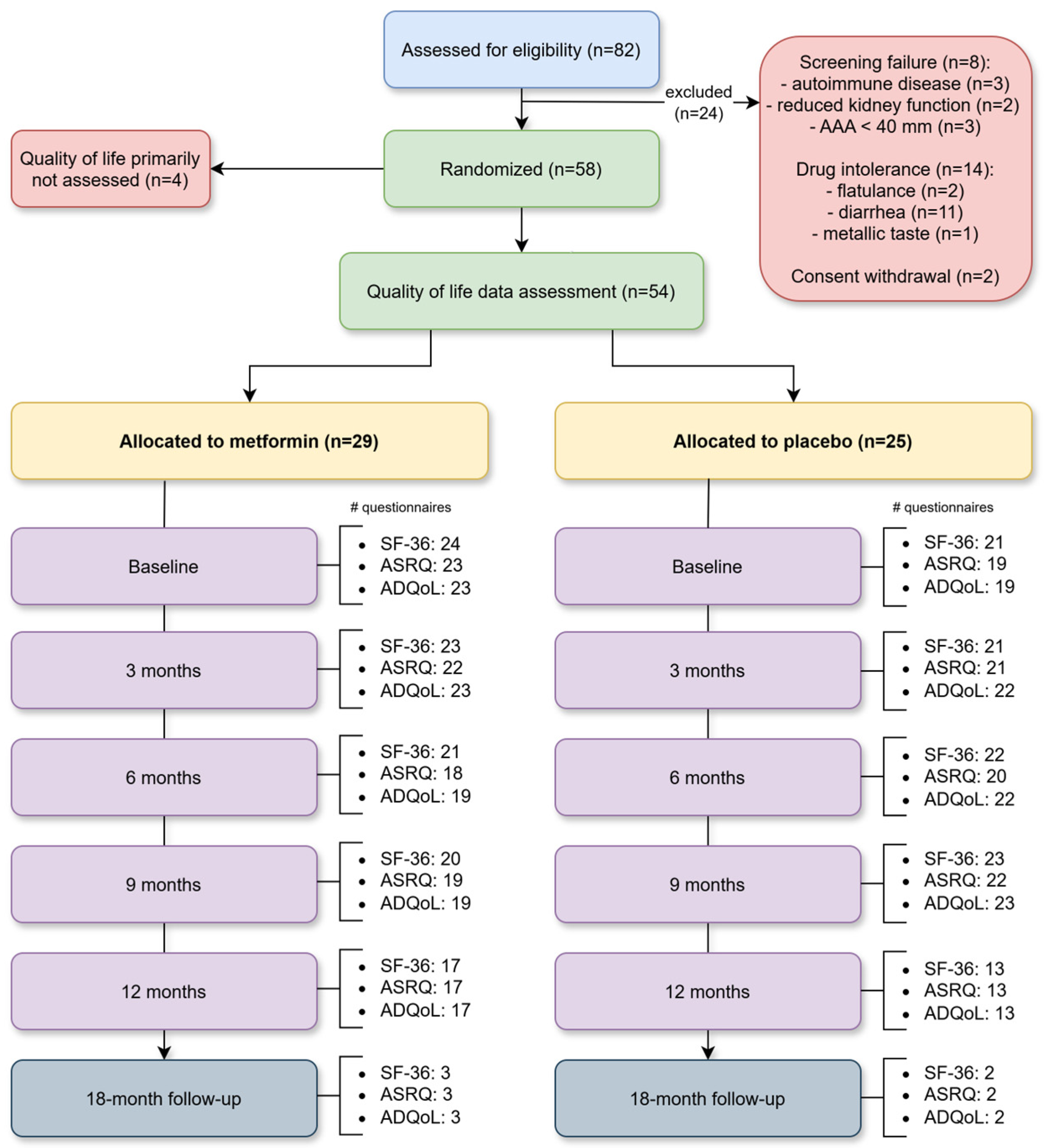 MetAAA Trial Patients Receiving Metformin Therapy Show Limited Improvement in Quality of Life Compared to AAA Patients with Placebo Intake—A Double-Blind, Randomized, and Placebo-Controlled Trial