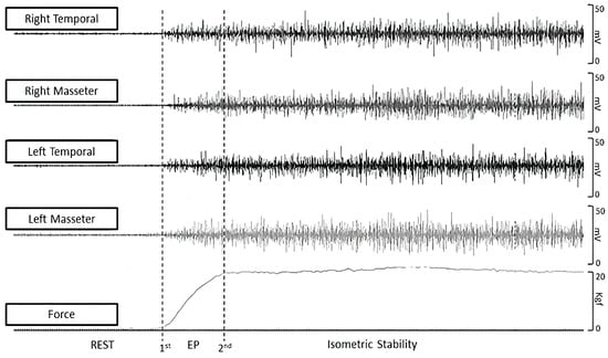 30. Pitta, N.C.; Nitsch, G.S.; Machado, M.B.; de Oliveira, A.S. Activation Time Analysis and Electromyographic Fatigue in Patients with Temporomandibular Disorders during Clenching. J. Electromyogr. Kinesiol. 2015, 25, 653–657. [Google Scholar] [CrossRef]