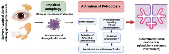 - Colafrancesco, S.; Barbati, C.; Priori, R.; Putro, E.; Giardina, F.; Gattamelata, A.; Monosi, B.; Colasanti, T.; Celia, A.I.; Cerbelli, B.; et al. Maladaptive Autophagy in the Pathogenesis of Autoimmune Epithelitis in Sjögren’s Syndrome. Arthritis Rheumatol. 2022, 74, 654–664. [Google Scholar] [CrossRef]