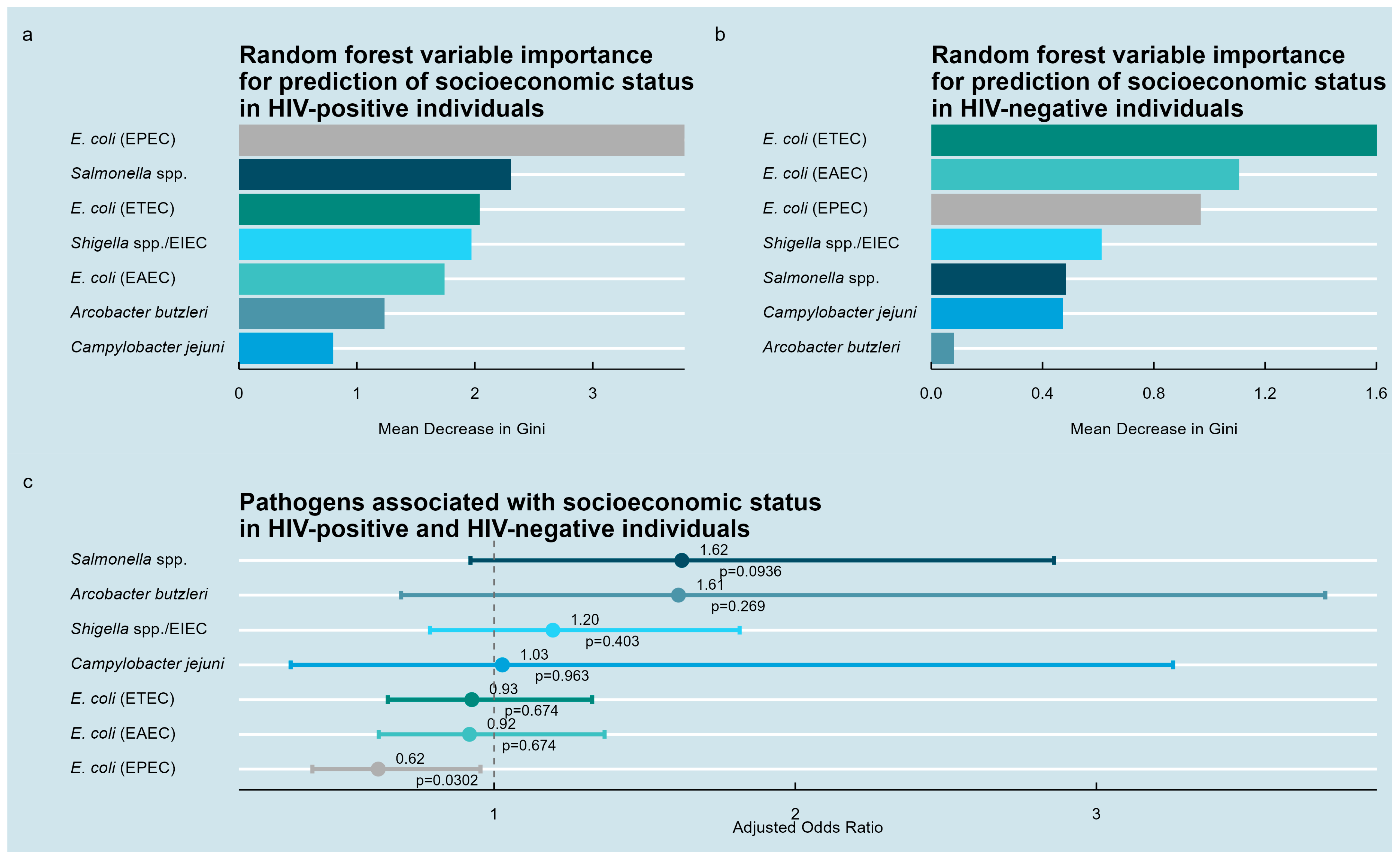 3.3. Enteric Pathogens Associated with CD4+ T-Lymphocyte Counts
