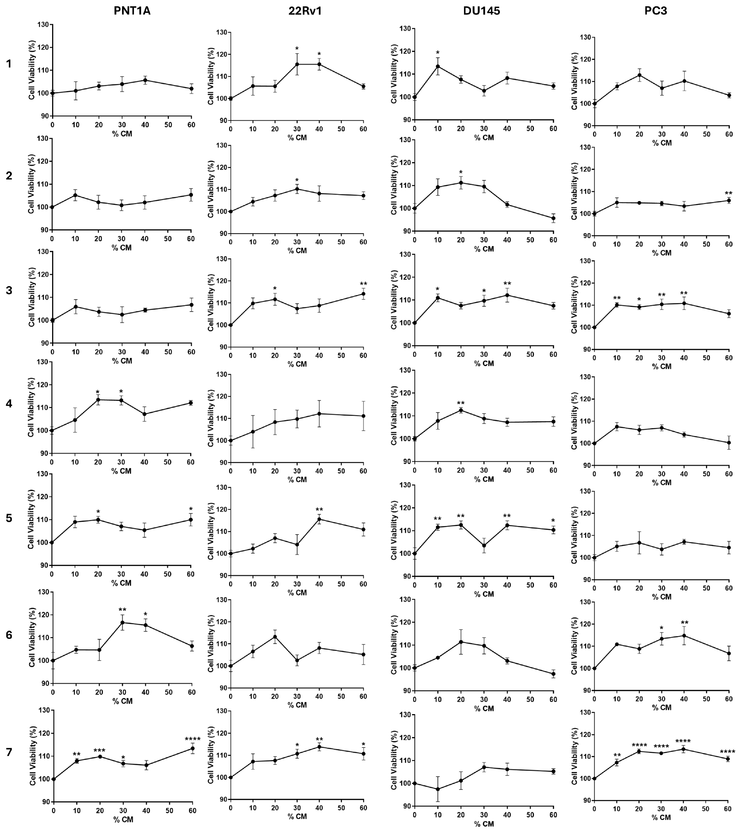 3.2. PPAT Secretome Slightly Increases Prostate Cell Viability