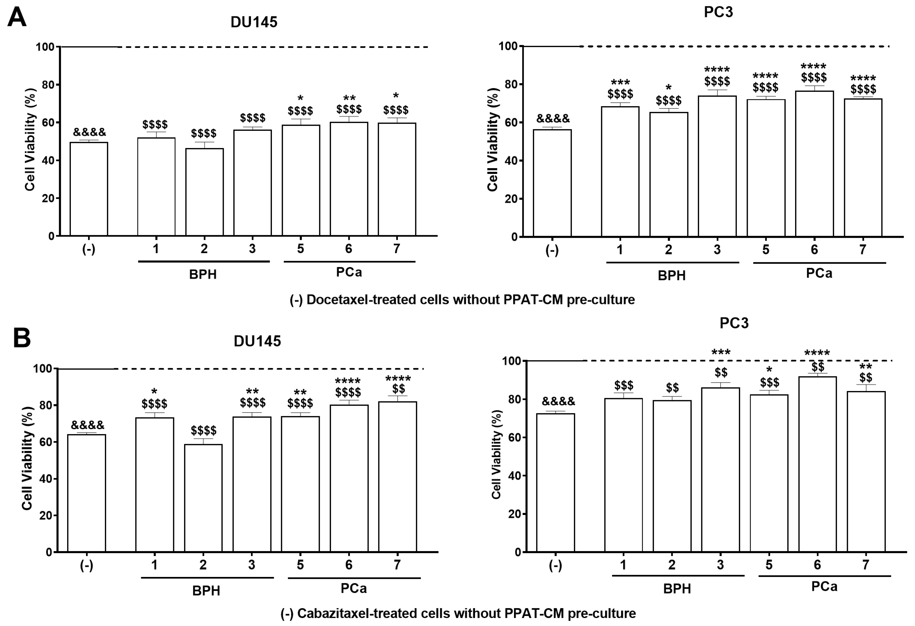 3.3. PPAT Secretome Reduced the Sensitivity of PCa Cells to Docetaxel and Cabazitaxel
