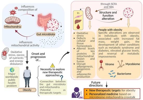 Despite the pathophysiology of obesity has not been fully elucidated, it is known that several mechanisms regulated by the bidirectional interaction between gut microbiome and mitochondria are altered in individuals with obesity [