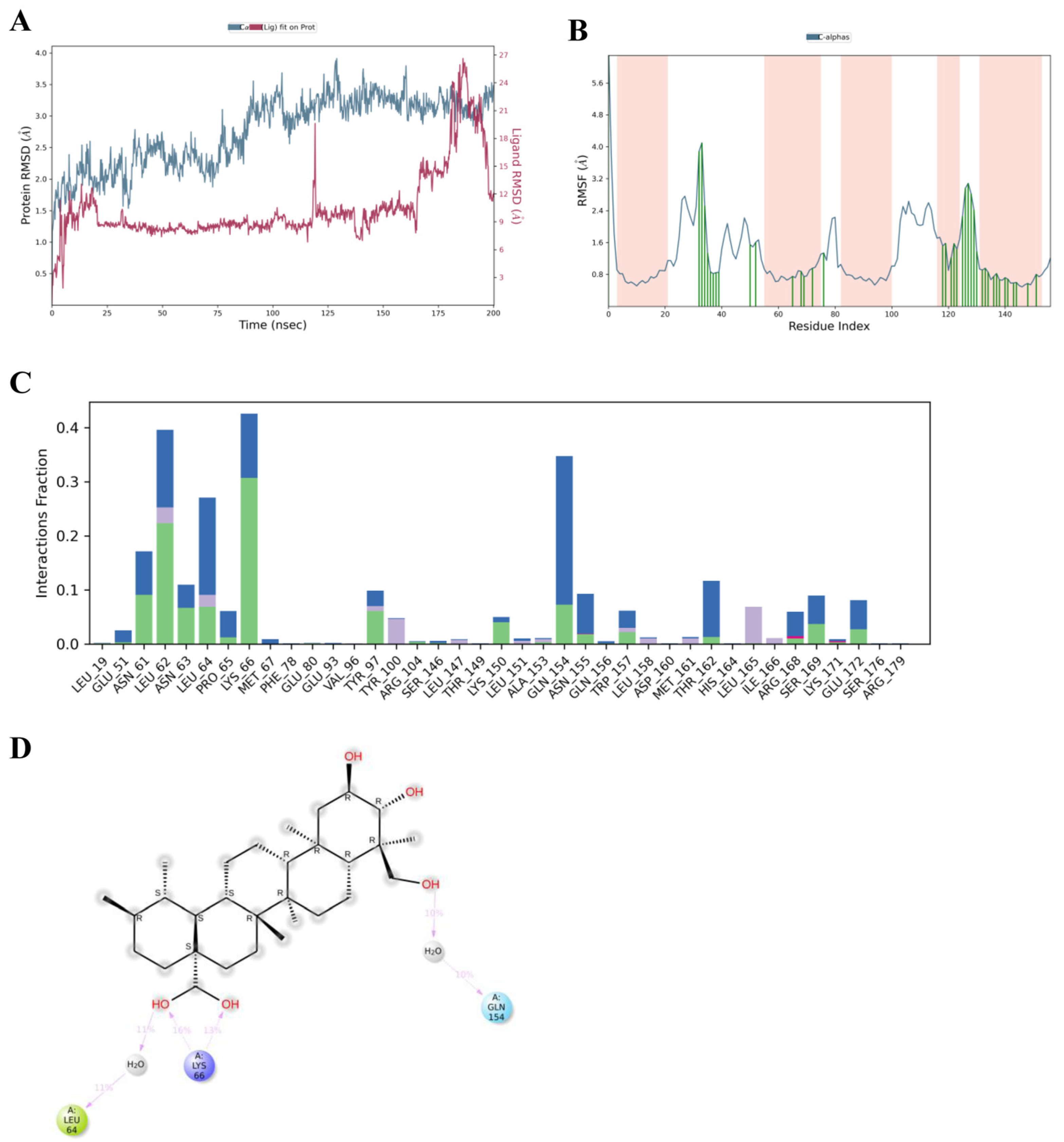 3.3. Molecular Dynamics Simulations of Asiatic Acid and IL-6