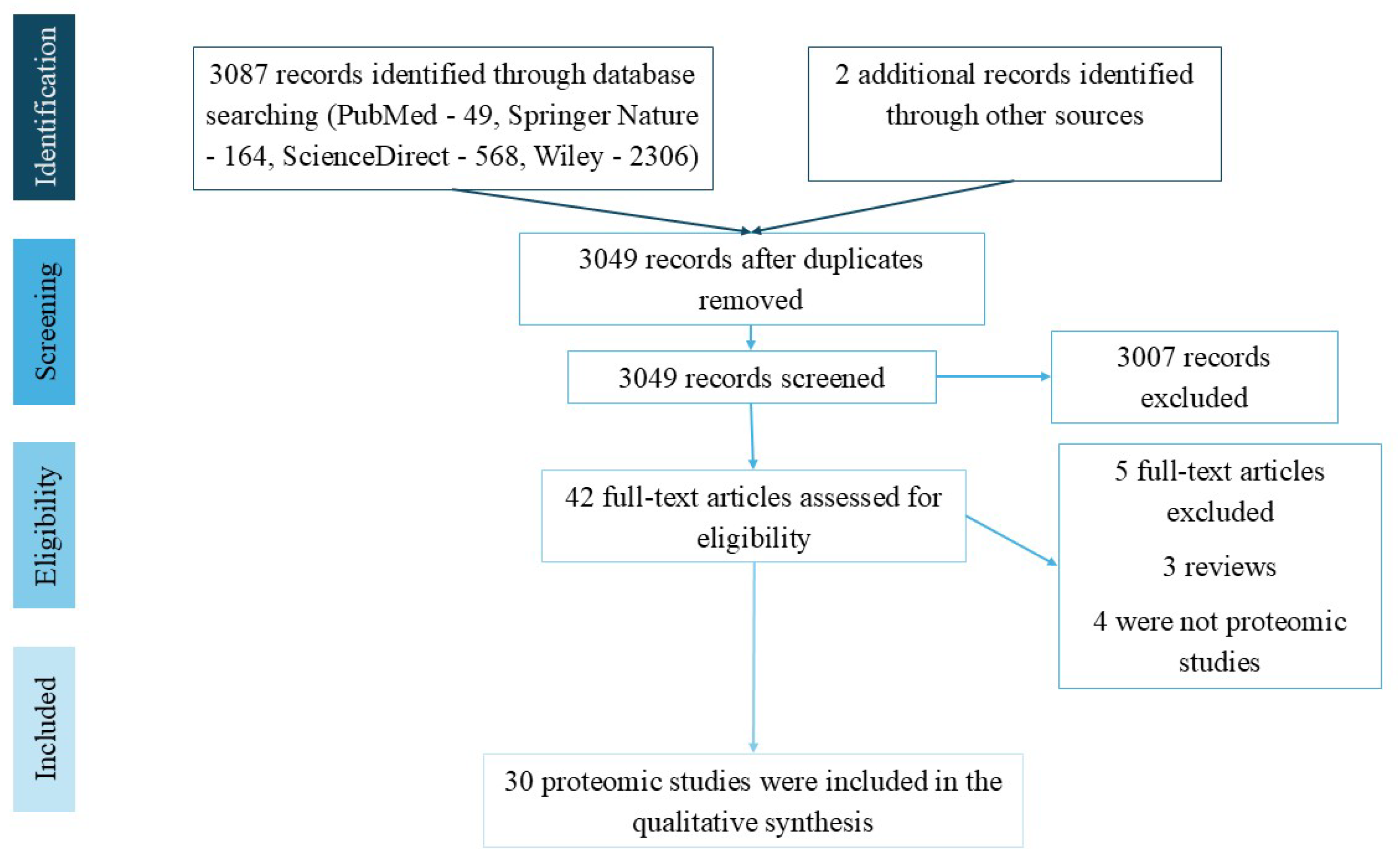 | Objective | Populations | Design | Methods | Sampling | Protein Concentrations | Number of Proteins Identified | Key Proteins | Main Findings | |