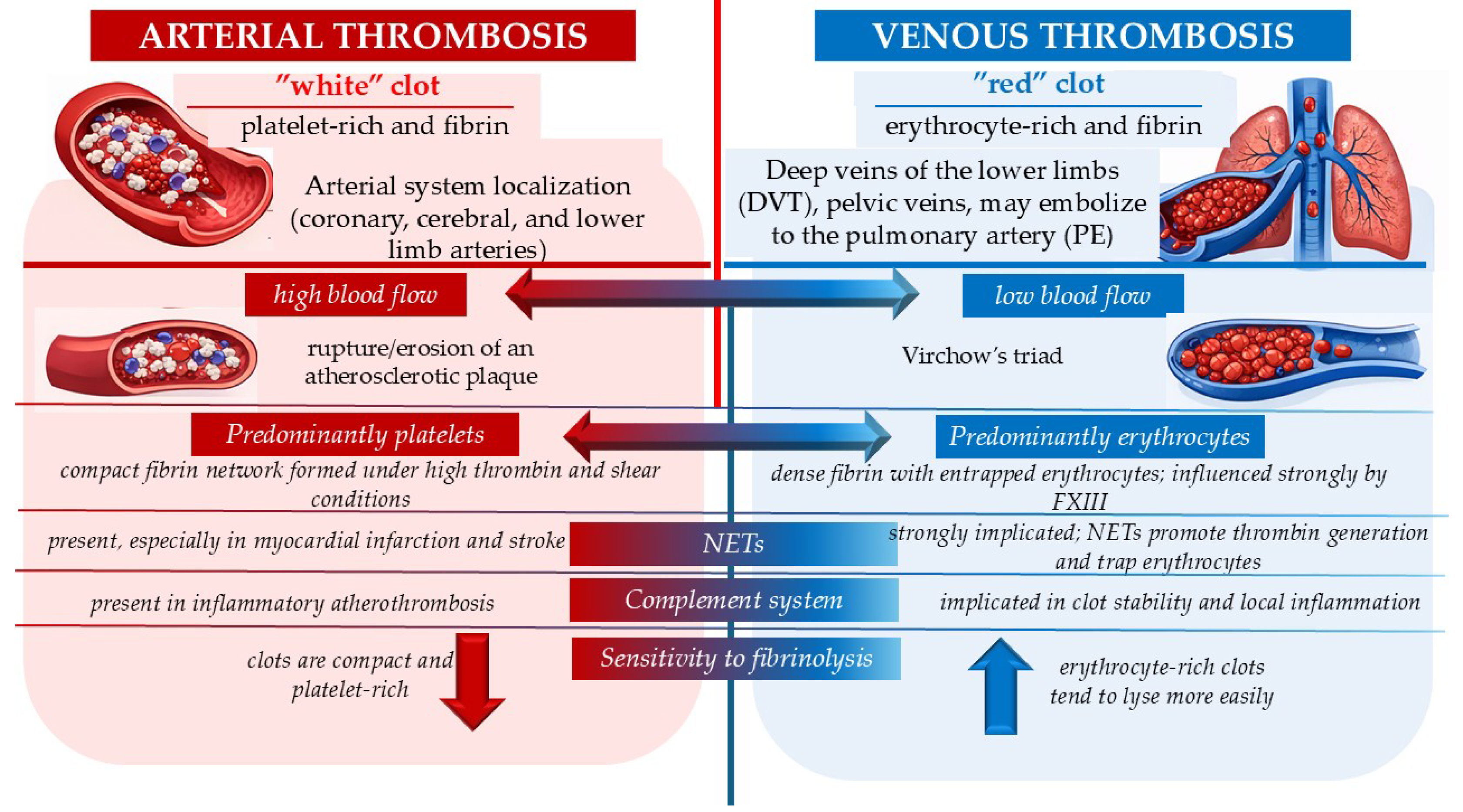 - Lippi, G.; Favaloro, E.J. Venous and Arterial Thromboses: Two Sides of the Same Coin? Semin. Thromb. Hemost. 2018, 44, 239–248. [Google Scholar] [CrossRef] [PubMed]