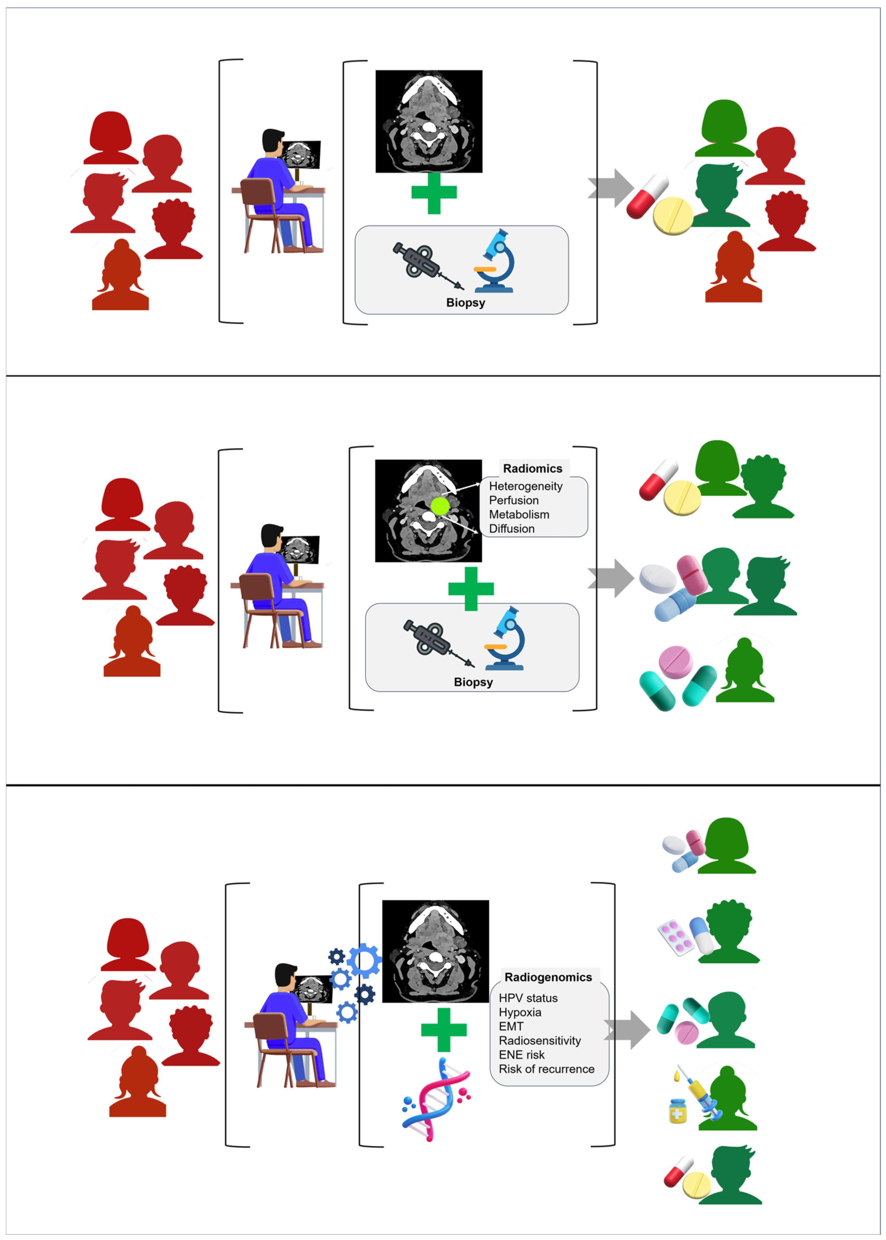 - Ong, Y.H.; Zheng, W.; Khong, P.L.; Ni, Q. Application of radiogenomics in head and neck cancer: A new tool toward diagnosis and therapy. Interdiscip. Radiol. 2024, 2, 113–127. [Google Scholar] [CrossRef]