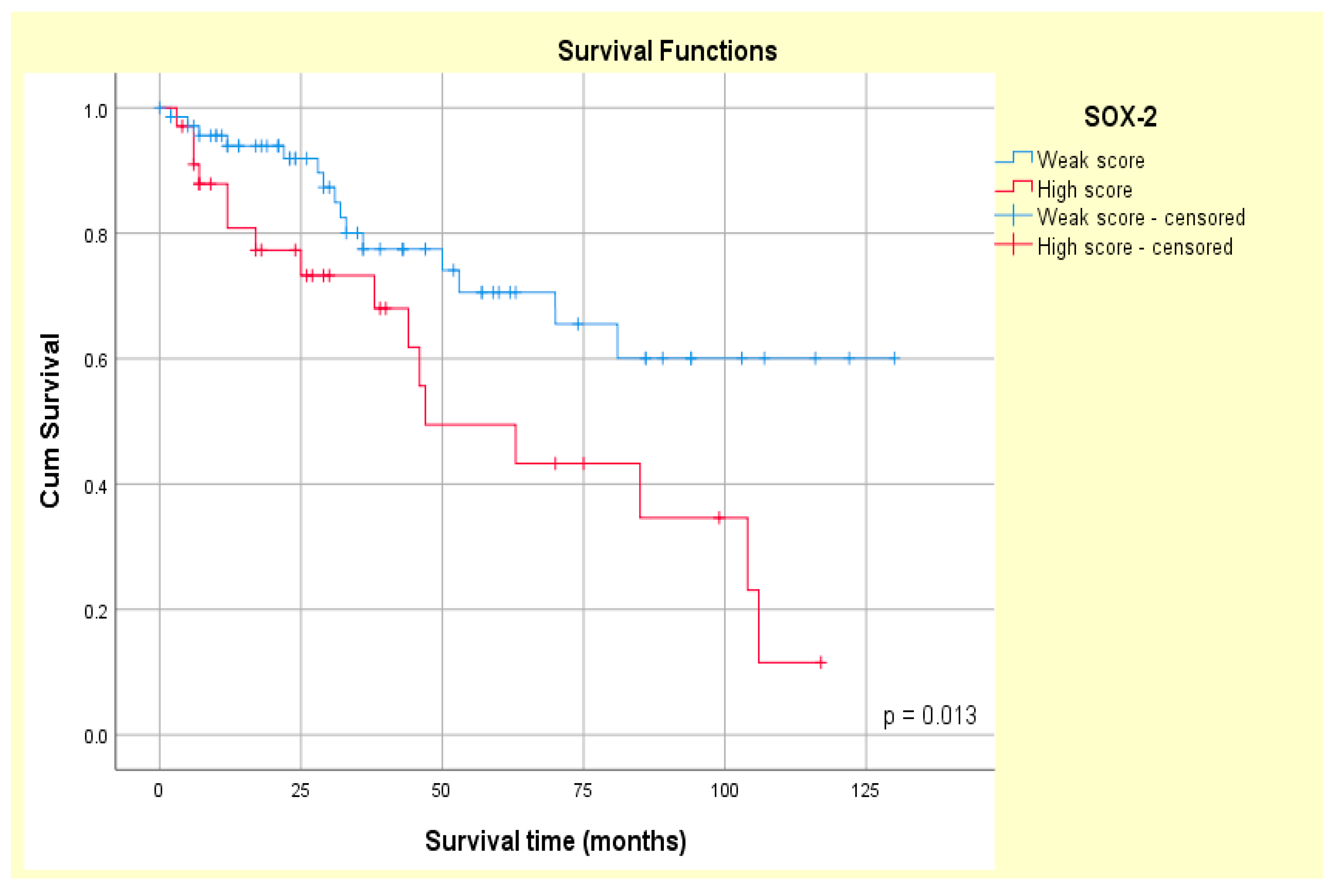 | SOX-2 expression | 2.373 (1.172–4.808) | 0.016 | 2.321 (1.144–4.710) | 0.020 |