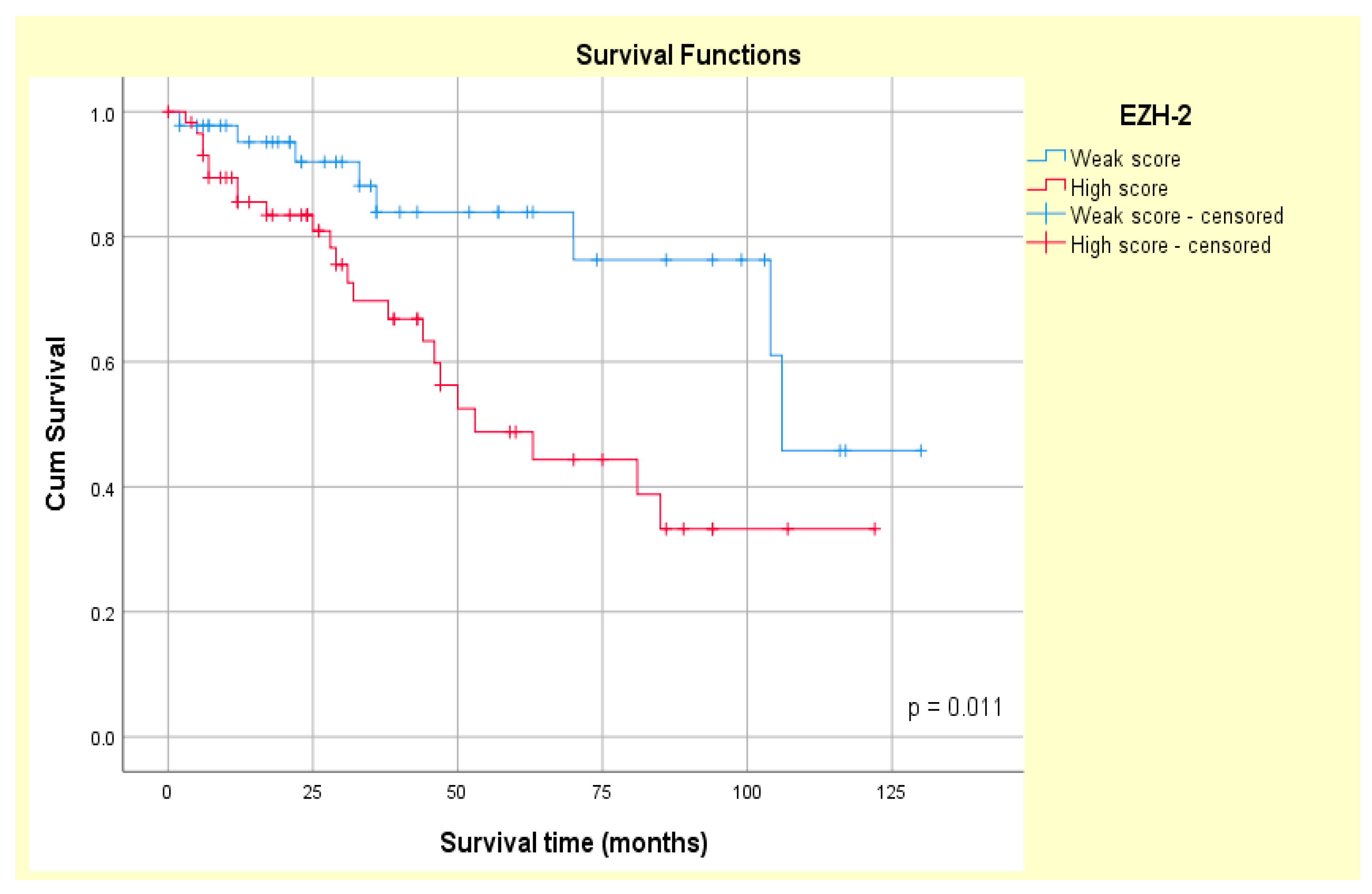 3.4. Correlation Between SOX-2 and EZH-2 Expression and Survival