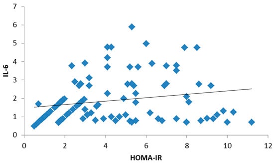 Significant positive correlation between interleukin-6 (IL-6) and HOMA-IR.