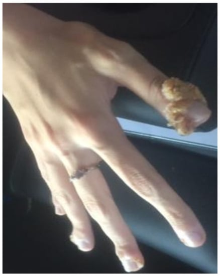 Verruca vulgaris in hand (Patient #1).