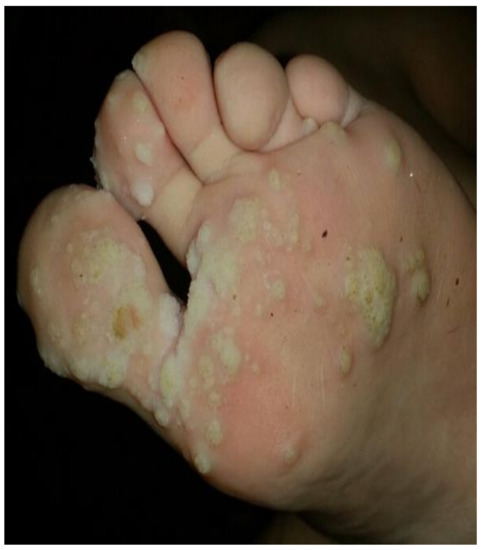 - Fortina, A.B.; Piaserico, S.; Alaibac, M.; Caforio, A.L.P.; Brandolisio, L.; Zacchello, G.; Zanon, G.F.; Zancan, L.; Peserico, A. Skin disorders in patients transplanted in childhood. Transpl. Int. 2005, 18, 360–365. [Google Scholar] [CrossRef] [PubMed]