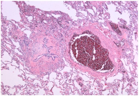 Histological image, magnification 100×, with obliteration of the endobronchial lumen, compared with the vascular lumen, in a patient with chronic rejection (courtesy of Dr. Clara Salas).