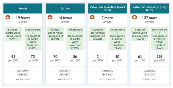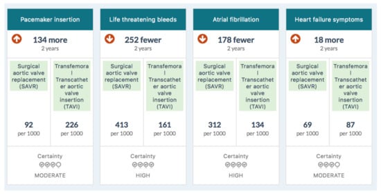 - Lytvyn, L.; Guyatt, G.H.; Manja, V.; Siemieniuk, R.A.; Zhang, Y.; Agoritsas, T.; Vandvik, P.O. Patient values and preferences on transcatheter or surgical aortic valve replacement therapy for aortic stenosis: A systematic review. BMJ Open 2016, 6, e014327. [Google Scholar] [CrossRef] [PubMed]