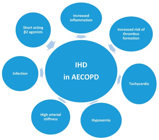 In this section, we briefly explore some of the mechanisms that are believed to underlie the association between AECOPD and IHD (Figure 1).