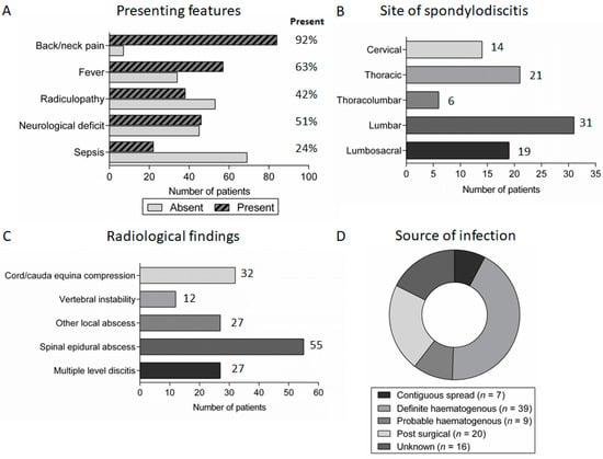Widdrington, J.D.; Emmerson, I.; Cullinan, M.; Narayanan, M.; Klejnow, E.; Watson, A.; Ong, E.L.C.; Schmid, M.L.; Price, D.A.; Schwab, U.; et al. Pyogenic Spondylodiscitis: Risk Factors for Adverse Clinical Outcome in Routine Clinical Practice. Med. Sci. 2018, 6, 96. https://doi.org/10.3390/medsci6040096