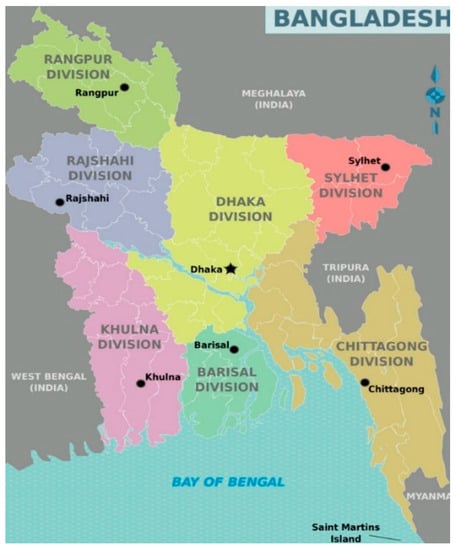 - Maps of the World. Available online: http://www.maps-of-the-world.net/maps-of-asia/maps-of-bangladesh/ (accessed on 28 October 2018).