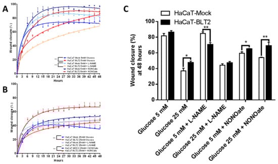 3.3. In Vitro Effect of NO Inhibition or Donation on Wound Healing