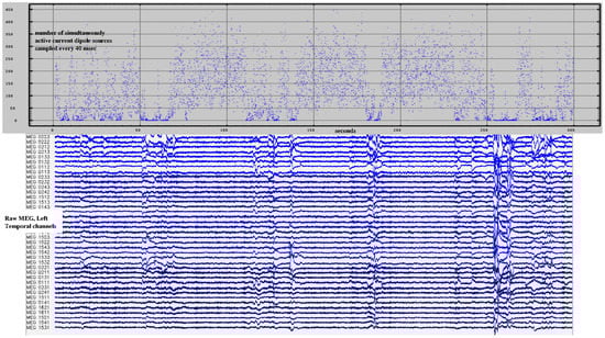 When applied to continuous MEG recordings, the solver typically identifies and validates more than 400 neuroelectric currents within the brain per 40 msec step through the data stream—p < 10−12 for each and p < 10−4 for each when conservatively corrected for multiple comparisons (Bonferroni). This is more than 600,000 currents per minute of recorded MEG data identified with millimeter and millisecond resolutions. Note that data segments contaminated by movement or other artifacts were not manually identified for removal. Instead, artifact rejection relied upon the referee consensus solver’s inherent failure to validate neuroelectric currents when presented with noisy data, as shown in Figure 9 [27].