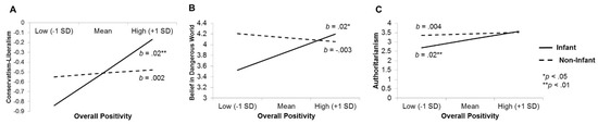 | Conservatism-Liberalism | −1.07 (.96) | −1.40 (0.7) * | −1.33 (0.96) | −1.47 (0.76) * |