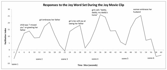 Figure 1. Analysis of the explicit ratings of the Joy movie clip indicated that for participants, joy-related words were congruent with the content of the clip and sad words were incongruent. We reason that this implies that participants experienced joy whilst watching this clip. In fact, the explicit ratings corroborate this interpretation where participants confirm the way they felt (see