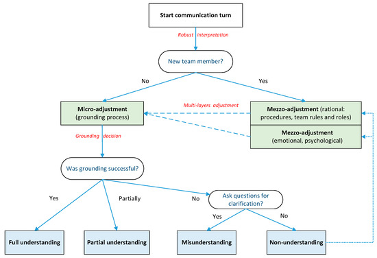 While the literature identifies that communication styles and team roles change, it primarily addresses the human grounding processes [53,54] and the spoken dialogs system (interactions between human and computer) [55]. It is not specific about the reasons for such change, or the mechanisms.