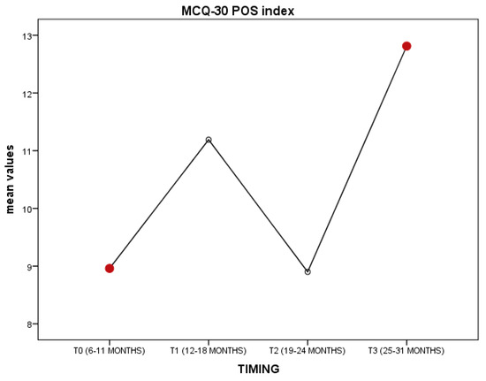 Representation of MCQ-30 POS index over time.