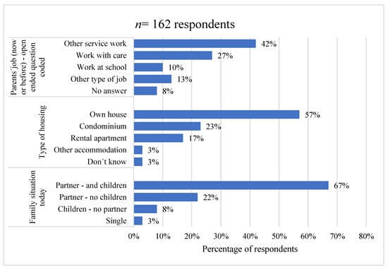 The question of parents’ occupation is an open question and has been coded. The study shows that most people worked, or have worked if they are pensioners, as a (private) official. The officials who stated that they had some type of service in the schools, health, and social care were broken out and reported on separately. As Figure 2 shows, the majority (57%) lived in villas, townhouses, or semi-detached houses, while almost a quarter (23%) lived in condominiums.