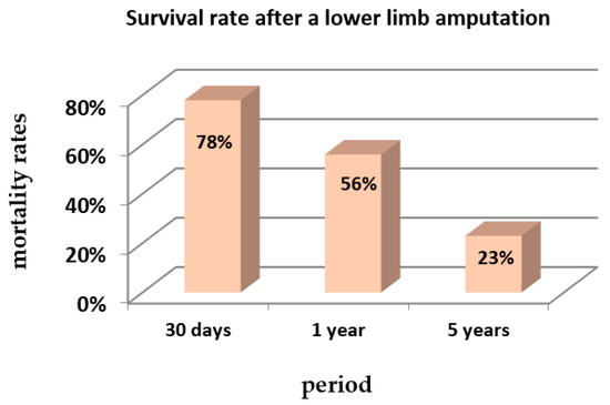 Mortality rates after a first lower limb amputation (%) in a period of 5 years—retrospective cohort study. Source: Fortington et al., 2013 [14].