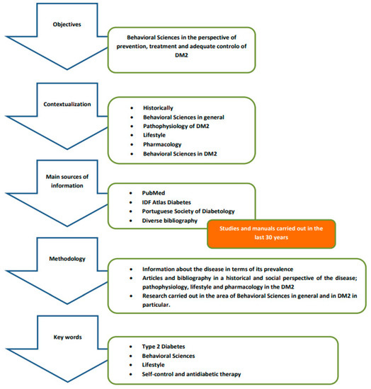 - The main sources of information were databases such as PubMed, IDF Diabetes Atlas, the Portuguese Society of Diabetology, as well as manuals in the field of Pharmacology/Pharmacotherapy, focusing generically on search terms such as behavioral sciences, history, pathophysiology, lifestyle and complications/comorbidities in diabetes, and specifically guidelines for the treatment of DM2 and behavioral sciences in diabetes.