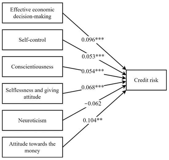 • As reflected in H3, a conscientious person has better financial control, holds savings, and ensures timely debt servicing. This result supports some research findings which state that responsible borrowers have a higher level of conscientiousness and rational debt behavior than risky borrowers [21]. Additionally, researchers stated that conscientious individuals are responsible, attentive, careful, persistent, orderly, and planful, while those people who score low on this trait are irresponsible, unreliable, careless, and distractible [58].