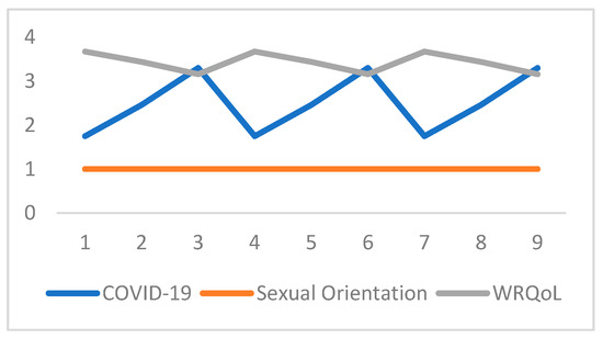 Despite the scarcity of studies on this topic, research shows that in other pandemic situations, such as HIV/AIDS, sexual minorities presented decreased results of WRQoL and more significant risks associated with their mental health [33]. These results may be due to the accumulation of stigmatizing barriers, namely, prejudice concerning the disease and their sexual minority status [34,35]. In the COVID-19 pandemic, like most people, sexual minorities have also suffered from job loss [36,37], and organizational and financial problems during the pandemic [19,38], leading to negative emotional consequences [19], due to stress associated with economic issues, unemployment, social isolation, and low WRQoL [39]. Sexual minorities typically suffer from vulnerabilities and disadvantages in the workplace, which can be exacerbated in an adverse situation such as the COVID-19 pandemic [23,40].