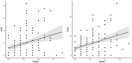 PHQ-9 and GAD-7 scores in relation to SMDS scores.