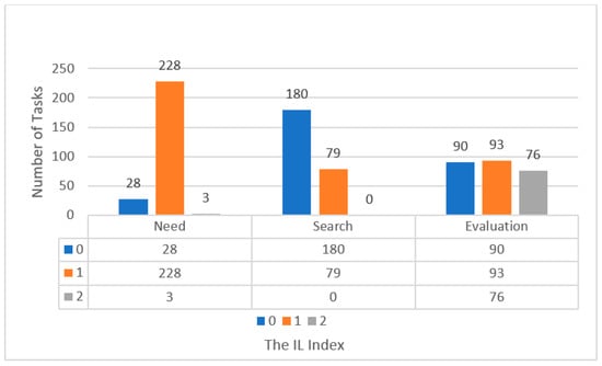 In this systematic review, we recalculated the IL index of each vocabulary learning task strictly according to Laufer and Hulstijn’s [] initial description of the ILH. We adjusted the ILs of the tasks in more than half of the 78 studies because we found that the ILs of many so-called L2 vocabulary learning tasks were not calculated according to the original ILH. This issue is consistent with the previous meta-analysis of Yanagisawa and Webb []. Hence, we recalculated the tasks of 20 studies. Moreover, we calculated the tasks involved in 22 studies in which researchers did not code the IL of their tasks. In summary, 53.85% (k = 42) of the 78 studies’ vocabulary learning tasks had to first be updated according to the original ILH. Then, the ILH components included in each individual L2 vocabulary learning task could be extracted. In the 262 different tasks, we found that the most common ILH component presented in vocabulary learning tasks was need, and the least often presented was search (see Figure 14 below).