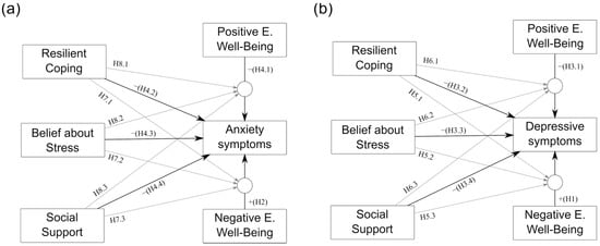 Model of proposed hypotheses for (a) anxiety and (b) depression.