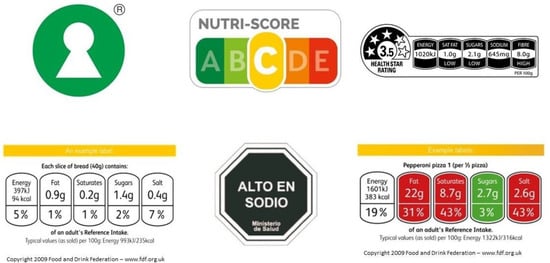 - Temple, N.J. Front-of-package food labels: A narrative review. Appetite 2020, 144, 104485. [Google Scholar] [CrossRef]
