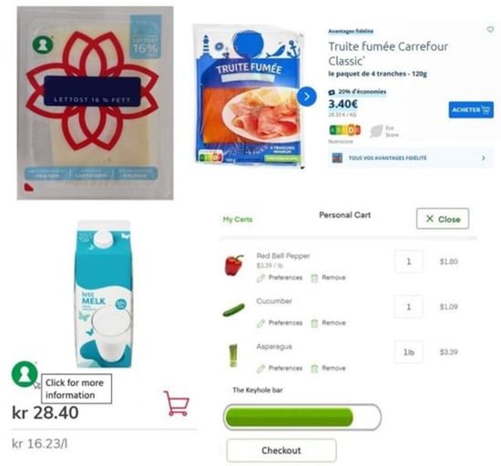 - Fagerstrøm, A.; Richartz, P.; Pawar, S.; Larsen, N.M.; Sigurdsson, V.; Eriksson, N. The relative importance of healthy food labels when shopping for groceries online. Procedia Comput. Sci. 2019, 164, 538–545. [Google Scholar] [CrossRef]