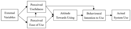 - Davis, F.D.; Bagozzi, R.P.; Warshaw, P.R. User Acceptance of Computer Technology: A Comparison of Two Theoretical Models. Manag. Sci. 1989, 35, 982–1003. [Google Scholar] [CrossRef]