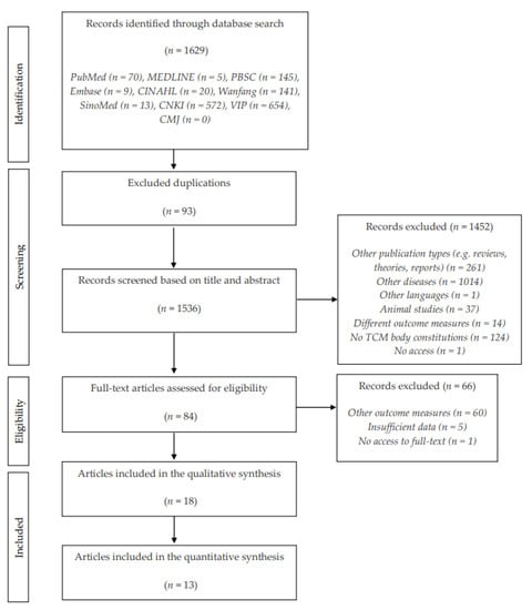 - Liang, X.; Wang, Q.; Jiang, Z.; Li, Z.; Zhang, M.; Yang, P.; Wang, X.; Wang, Y.; Qin, Y.; Li, T.; et al. Clinical Research Linking Traditional Chinese Medicine Constitution Types with Diseases: A Literature Review of 1639 Observational Studies. J. Tradit. Chin. Med. 2020, 40, 690–702. [Google Scholar] [CrossRef]