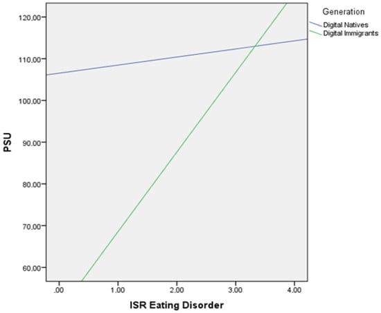 Interaction plot between eating disorder symptoms and PSU for digital natives and digital immigrants.