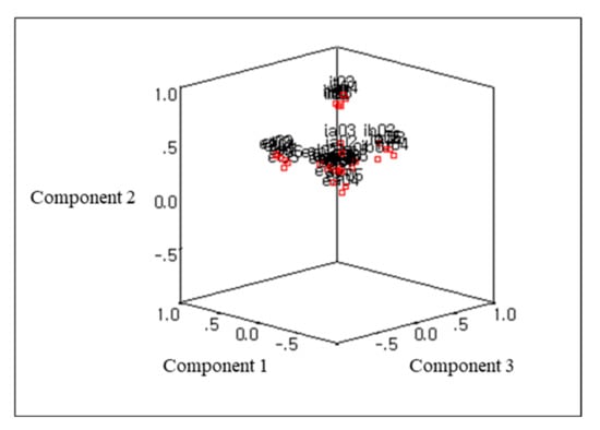When an item is removed, the reliability coefficient (Cronbach’s alpha if the item is deleted) of 0.50 or more is considered as the minimum value, and in the case of studies that verified the construct validity, even 0.50 or more is considered acceptable. In this study, no items with a reliability coefficient of less than 0.50 were detected, and the reliability coefficient (Cronbach’s alpha if item is deleted) when an item was deleted was 0.97, indicating a high reliability coefficient. As a result of performing an exploratory factor analysis on a total of 60 items used in the pilot analysis, among which four items from IT07 to IT10, four items from IA07 to IA10, and four items from IB07 to IB10. Also, four items from ET07 to ET10, four items from EA07 to EA10, and four items from EB07 to EB10 were removed. Finally, a total of 24 items were removed.